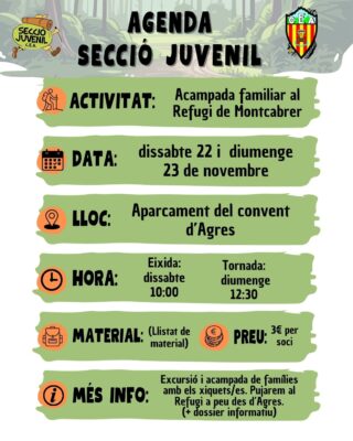 Pujada al Refugi de Montcabrer des d’Agres i acampada. Excursió per a famílies amb els xiquets i xiquetes.